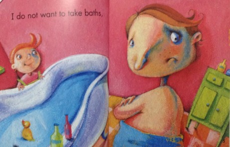 A big brother explains all the things he hates to do--take a bath, eat peas, share, wash his plate--although he does them to set a good example for his younger brother.