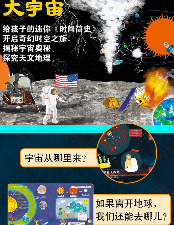 这是给孩子的宇宙奥秘启蒙百科绘本,更是给孩子的天文地理入门指南。一部迷你《时间简史》,一次奇幻的宇宙时空之旅。精心梳理有关宇宙的知识,包括银河系、太阳系、地球上的自然现象、气候环境等相关的百科知识点,内容详略得当,语言流畅考究,让孩子直观了解和感受宏大宇宙空间。