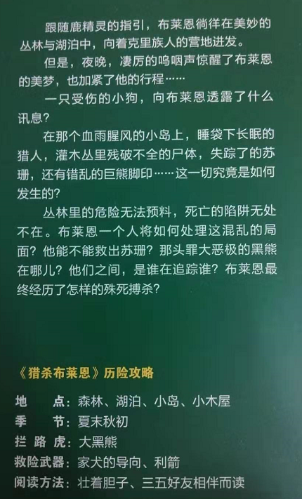 在那个血雨腥风的小岛上,睡袋里长眠的猎人,灌木丛里残破不全的尸体,失踪了的苏珊,还有错乱的巨熊脚印……这一切到底是如何发生的?布莱恩又该怎样去独自面对这一切,处理这下切呢?他是如何救出苏硼?又是如何追踪到那头罪大恶极的黑熊,并与之进行殊死搏斗?