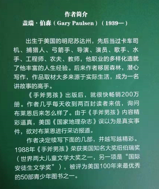 美国100年来最优秀的50部青少年图书之一《手斧男孩》系列!美国最受年轻读者欢迎的作家之一盖瑞·伯森最脍炙人口的系列作品!