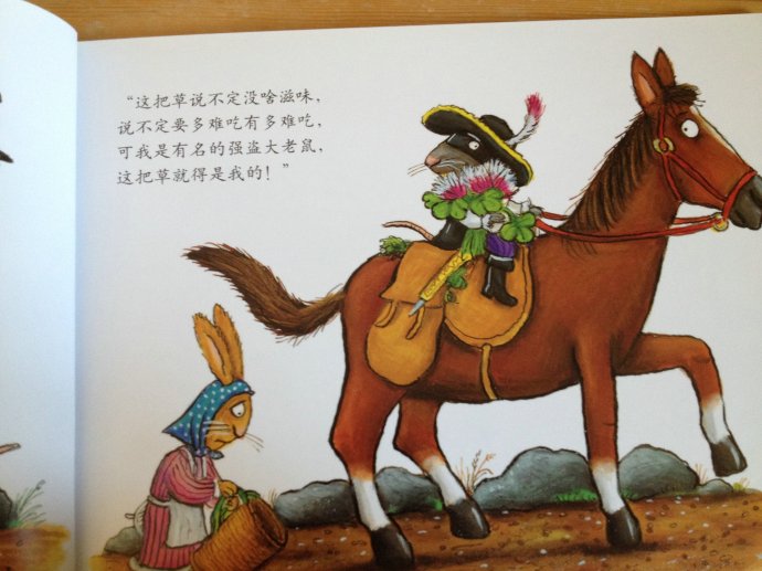 强盗大老鼠是个坏蛋。他需要什么就抢什么,抢到什么就吃什么,他不停的吃吃喝喝。他抢走了野兔的酥油饼,他吃了松鼠的榛子,还从小猫那里抢走了牛奶!从公路上经过的各种动物都变得越来越瘦,越来越瘦……后来,老鼠碰到了聪明的鸭子,它们会发生什么故事呢?