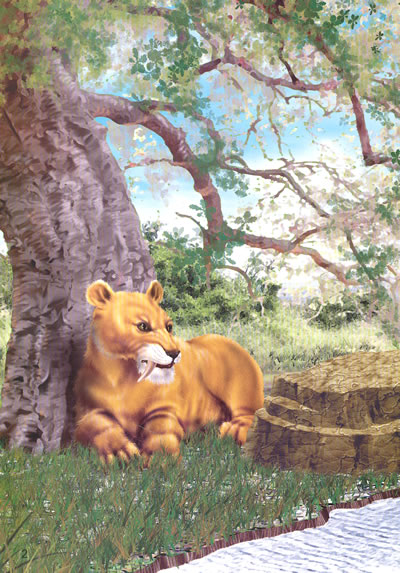 剑齿虎是一种猫科动物,生活在更新世晚期,距今约1万年~10万年。早期人类曾与它们共同生活在地球上。