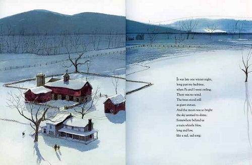 Late one winter night a little girl and her father go owling. The trees stand still as statues and the world is silent as a dream. Whoo-whoo-whoo, the father calls to the mysterious nighttime bird.