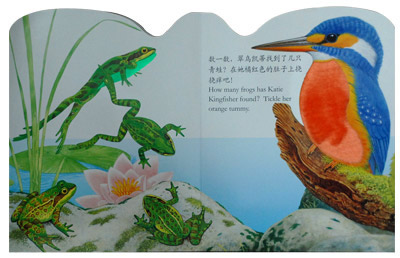 宝宝很喜欢,特别是书中能触摸到动物的皮毛的地方她很感兴趣,每天一睡醒就吵着要看“毛毛。。。”每天晚上要摸上好几遍,嘴里还哼着中文英文儿歌,呵呵,这本书对孩子进行双语培养与训练,用寻找和发现的故事吸引孩子,能鼓励孩子去触摸书中的动物,通过讲故事带领孩子进行认知学习,可以足不出户就能体验精彩美妙的自然世界。。。。