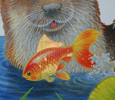 它不光看得到,还可以摸得着。瞧瞧可爱的小水獭,用手摸上去毛茸茸的;翠鸟的羽毛摸上去多么顺滑;还有鲤鱼的鳞片,摸上去滑溜溜的。这些不同的触感,不但满足了宝宝探索事物的好奇心,能极大的促进认知能力的发展,也能让宝宝根据感觉的不同,对不同物品建立一定的辨识能力。