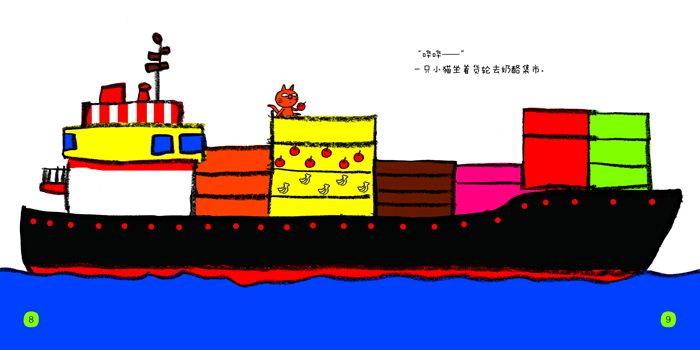 《好玩的交通立体认知书:船开啦》是为0-3岁幼儿打造的趣味立体纸板书。通过九只小猫坐船寻找蛋糕食材的旅程,向孩子介绍了水上、水下船只的造型、颜色以及功能等特点,让孩子在有趣的情境中动手翻开驾驶舱、客舱、货舱等,全方位地认知轮船、潜水艇、渔船、轮渡、快艇等常见的水上交通工具。
