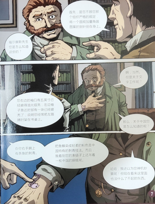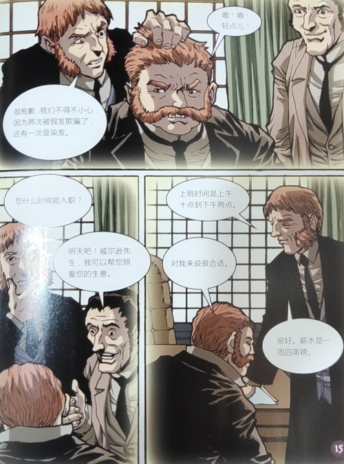 《福尔摩斯探案集 (漫画版) 第1辑》(全6册)。在这一辑中,大侦探福尔摩斯和华生去到了农庄、空房子……从一份红发俱乐部的广告开始最后破获一个犯罪团伙的过程,破解了花斑带之谜。每一本都是一个独立的故事,以侦探福尔摩斯与华生的经历为主线,引出了一件件耸人听闻的奇案,他们联手解决了一些悬而未决的疑案。本册《红发会》,故事背景是:一头红发的威尔逊遇到了一件奇怪的事,他入选红发会,每天只需干很少的工作就能拿到很高的薪酬。红发会却毫无征兆解散了。于是他找到福尔摩斯,经过福尔摩斯的推理,认为这是一起偷盗金库的案件,最后他们与警方一起将犯人抓获。