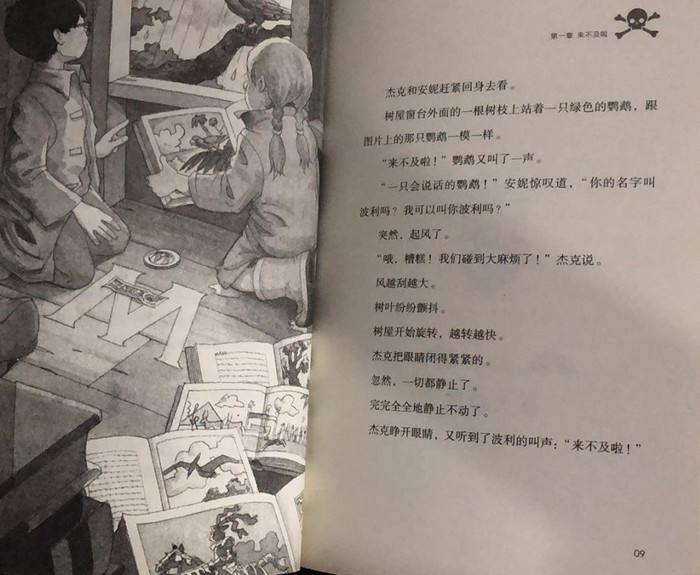 “来不及啦!来不及啦!”一只神秘的鹦鹉闯入树屋,将杰克和安妮带到了300年前加勒比海盗的老巢。