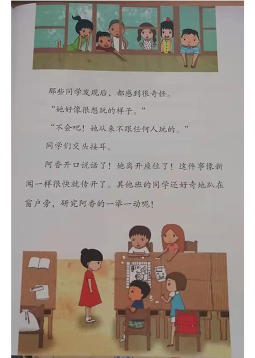 阿香是个安静的孩子,她从不搭理别人,没什么朋友。她脸上的表情总是淡淡的,没有变化。冷淡沉默的阿香,愈来愈孤单……直到有一天,爸爸送了她一条会“微笑”的金鱼,她的世界开始改变,变得更快乐、多彩。通过阿香与会微笑的金鱼的故事,孩子们将培养起“友爱同学”的好习惯。