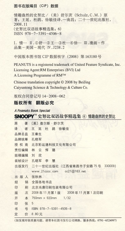 我是《史努比漫画》的忠实拥护者。我只会睡在查理·布朗的床单上。我的阿姨每年送我一张史努比生日卡。我深信幸福是一条温暖的毛毯。我想知道如果这只小狗咬我们一口,我们是否根本不会疯掉,是否我们身上都多了一圈史努比的光环。