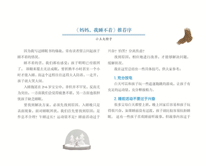 1.婴幼儿睡眠领域专家小土大橙子做序并力荐,深刻剖析了孩子不睡或者睡不着背后的原因,并给出6大实用技巧。