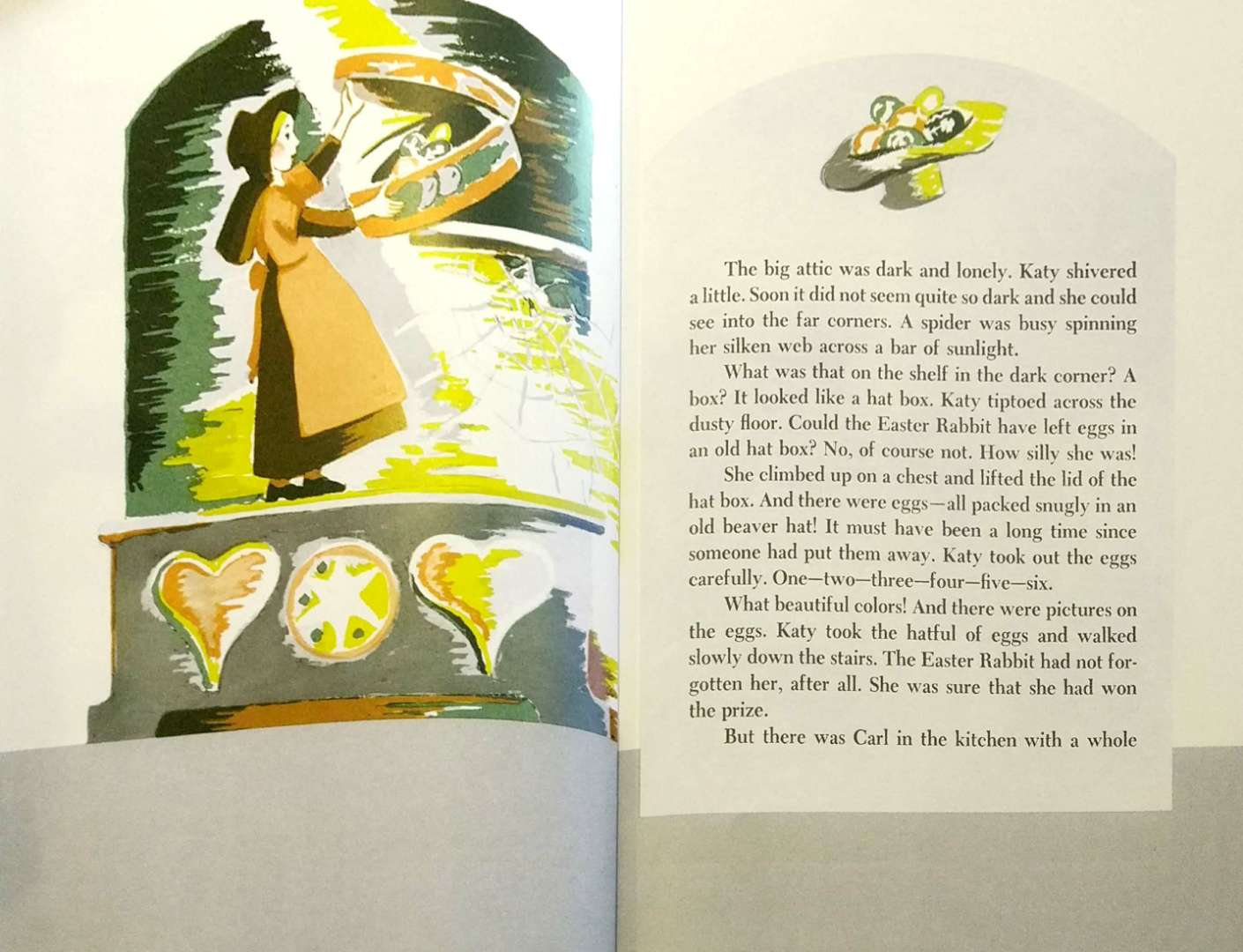 One Easter morning, Katy and Carl went on an egg hunt through Grandmom's house. Katy couldn't find anything until she went up to the attic. And there she discovered a very special set of eggs...