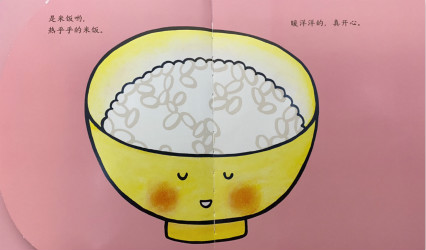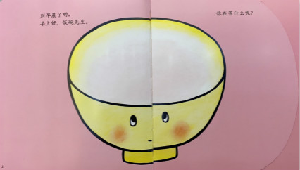 到早晨了呦。早上好,饭碗先生。你在等什么呢?是米饭呦,热乎乎的米饭。暖洋洋的,真开心。