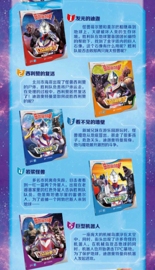 奥特曼——正义的化身 奥特曼——地球的守护者 为了保护地球上的人类,一代又一代奥特战士同邪恶力量进行了一次又一次战斗,在提升自身战斗力的同时,化解了人类的一次次危机。 本套书系每册两个个对战故事,主题丰富,包含正义、亲情、友谊、信任、合作等正能量主题,同时附有思维益智游戏,让孩子在欣赏故事的同时,学习优秀品质,训练大脑思维。