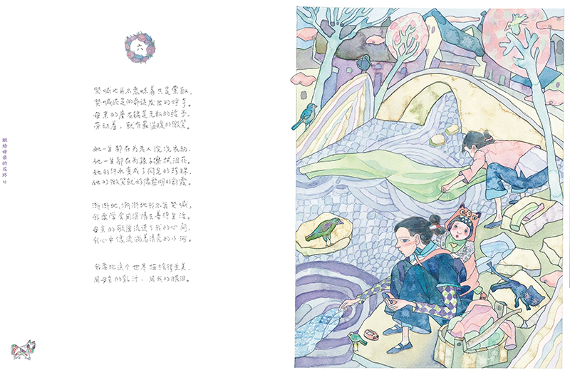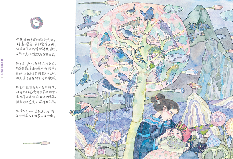 这是我国著名儿童文学作家、诗人金波先生创作的一组十四行花环诗,由14首十四行诗组成,每一首长诗的“尾声”,又是下一首十四行诗的首句,环环相扣,回环往复,一气呵成。在这组花环诗里,诗人把对妈妈的忆念和敬爱、对母爱的回味与礼赞,化作了缠绵悱恻、深情款款的优秀诗篇,充满了温情与柔情。作者细微的童年记忆和饱满的生命体验不仅具有个人色彩,也可以视为人类共通的美好记忆与情感,具有普遍而永恒的意味与力量。这部作品首次以绘本形式推出,典雅清丽的图画让诗作的丰富内涵得以充分释放和提升,散发出迷人的艺术魅力。诗歌绘本《献给母亲的花环》是对母爱的礼赞与讴歌。
