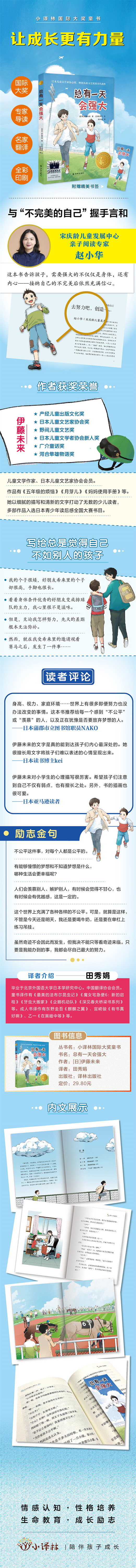 1.日本儿童文艺家协会奖、野间儿童文艺奖得主代表作。 2.宋庆龄儿童发展中心亲子阅读专家赵小华真情推荐。 3.关于认识自我的故事,触动孩子心灵。以真实的笔触描写了孩子在与同龄人的比较中产生的羡慕、嫉妒、自卑等心理,肯定了孩子在成长期产生的细腻感受。 4.与“不完美的自己”握手言和。告诉孩子,需要强大的不仅仅是身体,还有内心——接纳自己的不完美后依然充满信心。
