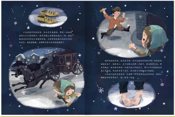 《卖火柴的小女孩》是丹麦著名童话故事作家安徒生的一篇著名的童话故事,发表于1846年。它讲述的是一个在新年前一夜卖火柴的小女孩的悲惨命运。因为没有卖掉一根火柴,小女孩一天没有吃东西。她又冷又饿,她擦亮了第一根火柴,看见了喷香的烤鹅;她擦亮第二根火柴,看见了美丽的圣诞树;她擦亮了第三根火柴,看见了久违的奶奶,她想让奶奶带她走,擦亮了一整把火柴。然而当火柴熄灭的时候,这所有的一切都不见了,小女孩就是这样新年前夜悲惨地死去,没有人知道她在生前最后一刻看到的美好情景。