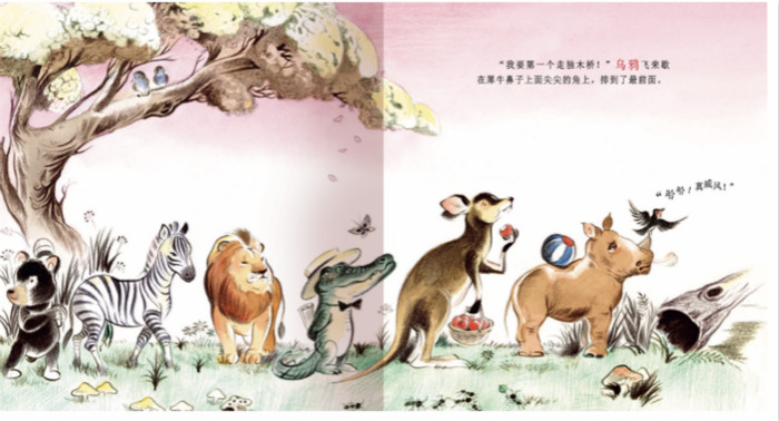 《吃蛋糕》是《大家都想》套装书系之一,本套书共4册,适合2~6岁孩子阅读。森林的草地上,一个不知被谁落下的蛋糕,吸引了很多的动物。小蚂蚁、蜘蛛、变色龙、小壁虎、穿山甲、狐狸、大灰狼等小动物一个接一个靠近蛋糕,利用自身的优势特点或是巧妙的诡计,成功尝到蛋糕的甜美。大动物们更是凭着身强体壮,毫不客气地赶走比自己弱小的动物,想要独自霸占蛋糕:狮子赶走了大灰狼,犀牛赶走了狮子,大象赶走了犀牛。然而等大象转过身,却发现蛋糕不见了。大象已经是陆地上最庞大、最有力量的动物,谁还能从他的鼻子底下抢走蛋糕呢。