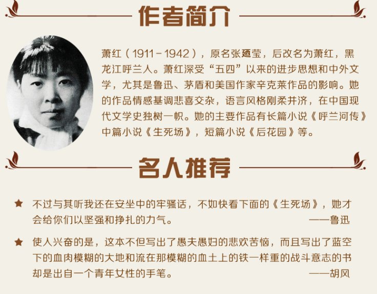 同时,除《生死场》外,本书还精选了萧红的一些短篇小说《朦胧的期待》《后花园》《小城三月》《家族以外的人》《王阿嫂的死》,以飨读者。