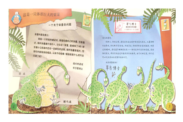 这套书容纳了关于地球、天气、动物、恐龙、爬行动物和微型动物的知识,极为丰富。绘者还别出心裁地使用混合媒材的插画、彩色照片及结合卡通插图的文字,让图书的形式充满趣味,吸引孩子的阅读欲望。