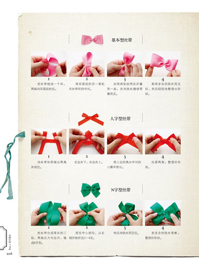 与孩子一起制作丝带。因编写的丝带设计过程简单,孩子独自就可以轻松地制作完成。同时,在妈妈制作过程中。孩子也可以参与进来,所以丝带制作也是很好的母子游戏。