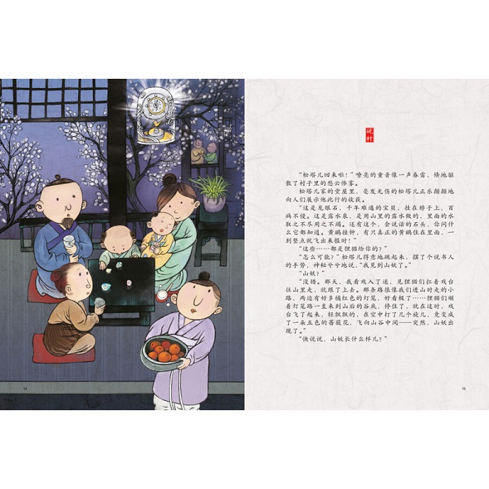 孩子们发现山里有狸猫搭台唱戏,觉得有趣极了。更神奇的是,它们的导演是一位年纪很大的白发山妖。山妖喜欢孩子,把自己珍藏的礼物都送给了孩子,大人们不敢相信天下竟然有这样的好事…… 书中用具有梦幻色彩的图画描绘了可爱的狸猫、植物幻化成的戏台、搁满宝物的山洞,还有美丽而孤单的山妖,造型生动,色彩艳丽。在阅读这本美丽的书时,读者可以感受到孩子发自童心的热爱与成人功利心之间的反差,从而反思自身。