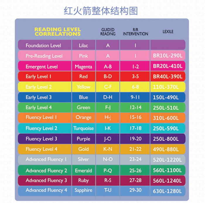 这套书很“重”,是一整套体系,仅盖世引进的前两个阶段加起来就有318本,可谓体量庞大。同时,这书也很“轻”,因为每册书只有16页,轻薄短小,在加拿大的学校,一节课就能完成一本,很容易实现“单个突破”! 红火箭分级阅读系列从大写字母开始,从每页上只有一个词、两个词,到每页上有一句话、两句话,这种难度渐进设计,很适合非母语国家的孩子用来学习英语。它的进阶体系符合蓝思分级系统,能带着孩子通过“量”的积累实现“质”的突破。最重要的,这套书的每一级别都是故事书和科普书5:5配比,兼顾趣味性、艺术性和科学性,能让孩子在学英语的同时掌握大量的生活百科知识!…………