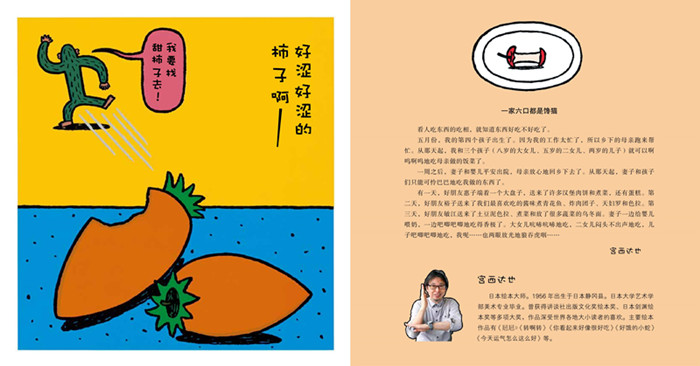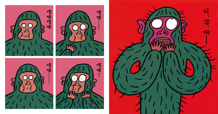 《知道我吃什么了吗?》:食物认知,趣味猜想,培养宝宝想象力和观察力 大猩猩吃东西,一会儿吧唧吧唧,一会儿咔嚓咔嚓,你能通过声音猜出他吃了什么吗?如果不能,请看看盘子里的线索,还有大猩猩的表情。宫西达也在该绘本中采用了不同的背景色,为孩子喜欢的重复又增添了一些变化。而每一次吃完水果都笑眯眯的猩猩在故事的结尾出现了戏剧性的转折——吃到了什么不好吃的东西,让它的脸如此扭曲?宫西达也风的粗线条勾勒,加上高饱和度纯色配色,除了物体的形状颜色等物理体征,又突出了益智的主题。画风呆萌可爱,趣味十足。