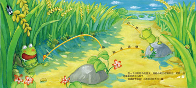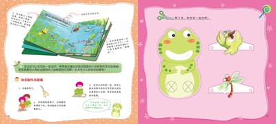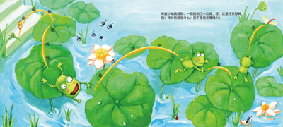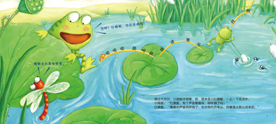 讲故事好玩,一起讲故事更好玩!这是一套不仅能让宝宝参与进来,而且还可以表演主角的故事书! 动动小手指,跟着小青蛙出发啦!请妈妈来念旁白,宝宝用手指和小青蛙一起“蹦蹦跳”,到热热闹闹的小池塘中转一圈儿,并给妈妈讲一讲都认识了哪些池塘中的小动物和水生植物吧!