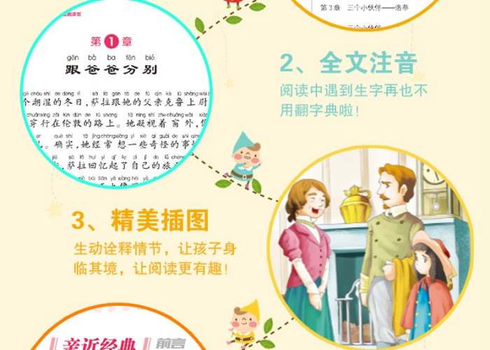 《世界经典名著阅读馆:小公主(注音版)》是一部儿童小说。它刻画了萨拉·克鲁这样一个心地善良、不怕困苦、自强不息的人物形象。萨拉是一位富有的英国绅士的爱女。她本来在学校里过着无忧无虑的生活,然而随着父亲的离世,她在学校里的地位也发生了翻天覆地的变化。萨拉从一个吃穿不愁的小公主变成了低贱的侍女。但她却没有因此而沮丧。在困境中保持着公主的风范,从而得到多人对她的同情和钦佩。