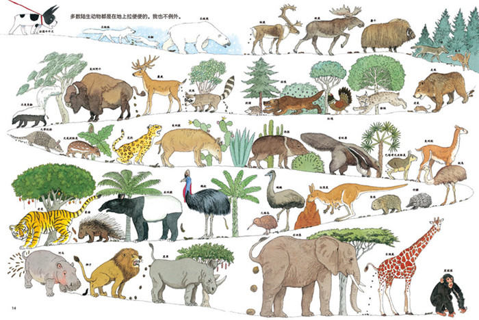 本书从一只小狗的视角出发,讲述了生活在陆地上、天空中、树上和水里的动物顺应各自生存环境的排便方式,还讲解了粪便的各种用途,以及粪便被排出体外后,如何进入生态系统的循环当中,在生态系统中起到的作用。书中绘制了200余种动物和它们的粪便,了解动物便便相关知识的同时,也是一本非常精美的动物小图鉴。