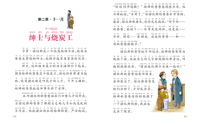 《爱的教育》这部极富感染力的儿童小说,不仅被认为是世界上*秀的少儿读物,还被誉为“一部人生成长的必读书”,令全世界亿万读者感动不已。全书通过一个小学四年级学生——安利柯写的日记,讲述了众多发生在学校和生活中的小故事,抒发了人类最伟大的情感——爱。这些“爱的故事”将真诚、友爱、坚强、善良、高尚等真情注入孩子们的心田,滋养着他们的心灵