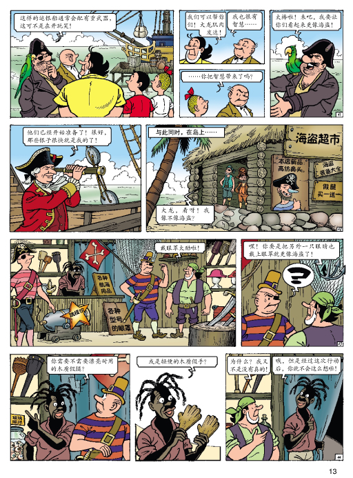 其次,《苏苏和维维历险记》的精神内核是不出声响地就能在人心底悄悄地生根发芽的。相对于《丁丁历险记》,它的核心价值观不再是个人英雄主义的,而更注重团队精神,如果说《丁丁历险记》的关键词是正义和勇敢,那么在归纳“苏苏和维维”的关键词时,除了“正义和勇敢”,我们一定还要加上“友情”。“苏苏和维维”,不是一个人的战斗和历险,也不是两个人的,它是一群伙伴共同的历险经历,他们中有的是同龄人,有的是长辈,有的是忘年交,每一个人都个性十足,优点和缺点都非常突出,他们是怎样相处的呢,发生了哪些故事。我觉得对于中国当下的少年儿童来说,学会与人的相处之道是非常重要的。在中国,20世纪80年代以前出生的人,由于社会分配形式以及生育政策的关系,人们比较缺少“个人意志”这种东西,那时,“丁丁”给我们带来了不一样的体验,让我们知道一个人可以做那么多事,“自由意志”是多么的可贵;而今天,情况大不同了,“独生子女”的现状,让“个性”在中国比在世界上任何一个地方都显著,“我”在孩子们心中是最大的了,任何事物过犹不及,这样的生存现状,让孩子与机器越来越近,与人越来越远,甚至渐渐失去对与人交往的渴望。我是很希望,中国的孩子在这样一部好看的历险漫画中,能感受到与朋友在一起做一些事情的乐趣,这是一个潜移默化的过程,“苏苏和维维”在这个时代被引进中国,我想具有它特殊的意义,虽然它表面上看不出任何教化的痕迹,但这就是经典,我相信它的无意识将隐藏在孩子的深层记忆中。