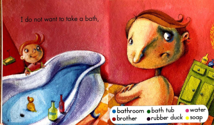 这里有一个不开心的哥哥。他为什么不开心呀?他不想洗脸,不想吃豆子,不想出去玩.....似乎所有的事情他都不太想去做呢。可是,每次到了最后他总是会完成,原来是给自己的弟弟做榜样呢