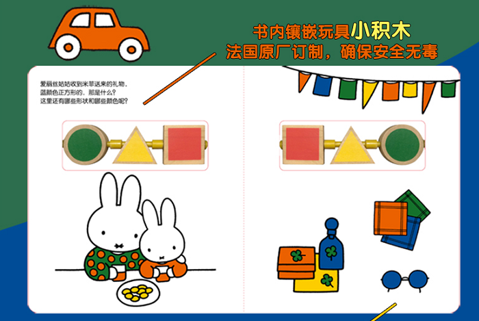 米菲早教玩具书《和米菲一起认识形状和颜色》是一本集早教和游戏于一身的早教玩具书,除了有简单的颜色和形状外,还能与书中的积木玩具展开互动式的阅读,给小读者带来不一样的交互式阅读体验。同时,书中还列举了日常生活中这些颜色和形状的应用,再结合积木玩具,能让小读者有更深入的理解。