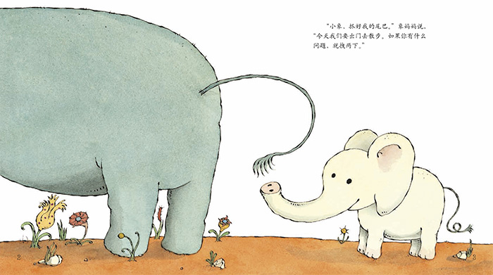 《尾巴拽拽》:象妈妈带着小象出门散步,妈妈对小象说:“抓好我的尾巴,如果你有问题想问我,就拽两下。”于是一场孩子与妈妈之间的趣味问答游戏开始了!就让我们翻开书页,在凯迪克大奖作家伊夫·邦廷的带领下,体会孩子和妈妈之间那款款的温情吧!