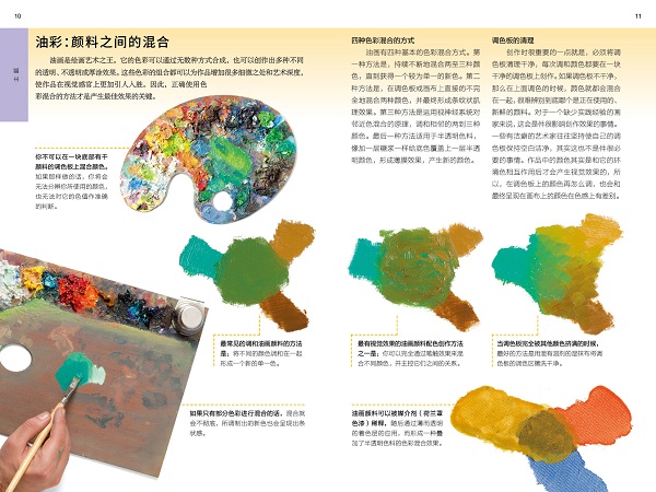在这本书里,我们详细解释了色彩混合的方法,并用很多实例练习来展示整个混合的过程。我们的目标是帮助大家掌握色彩在相互融合时的各种不同的表现,并理解它们的多种作用,包括构建和谐、凸显造型、营造氛围、强化对比等。所有这些在准确表现色彩时都是很重要的。