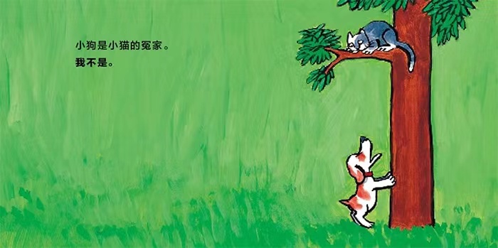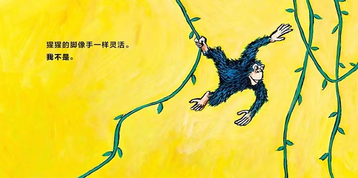 《我不是 我也是》是一本认知类图画书,让儿童与小狗、小羊、小象、猩猩比较,寻找其相同点和不同点。例如,小狗是小猫的对头,孩子不是;小象的力气很大很大,孩子不是;小羊害怕大野狼,孩子也是;猩猩喜欢做鬼脸,孩子也是。本书通过孩子与小动物之间的对比,帮助孩子认识动物、理解自身;此外,本书节奏轻快、互动性强,会带给儿童无尽的阅读乐趣。