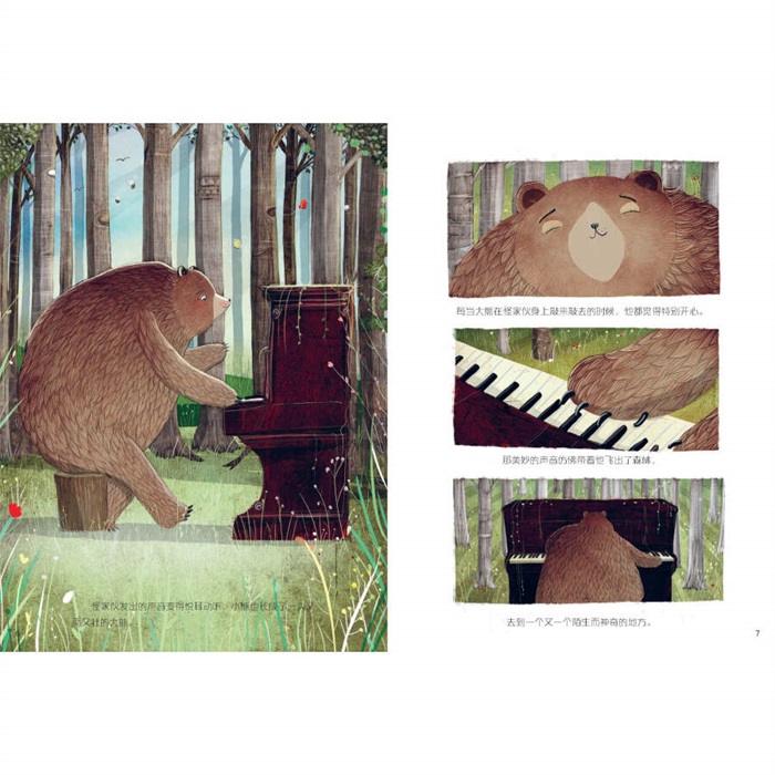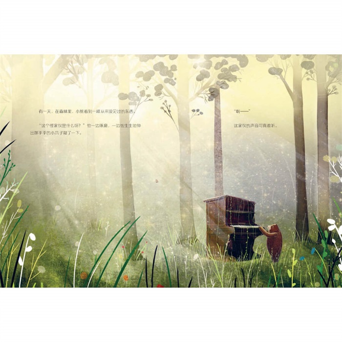 有一天,在森林里,小熊看到一件从未见过的东西——钢琴。从他碰到琴键的那一刻,便踏上了一场旅程,从森林来到另外一个陌生奇妙的地方,那儿有美丽的音乐缭绕,有近在眼前的功名财富……都市里的一切都像大熊心里期望的那样。可在他的心底,隐约间有什么在牵挂着他……最后他回到森林,为一直在等待他回来的朋友们演奏。这是一篇动人的童话,带我们去梦想的地方徜徉,让我们知道有谁在期待我们的归来。