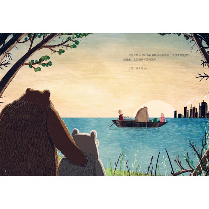 《大熊和钢琴》是一个触动人心的故事一- :人需要做一种有根的植物,即使长成参天大树,也不能忘记脚下的土地;即使生命已经走得很远,也要记得回到“初心” ——绘本研究专家、作家、翻译家朱自强 合上《大熊和钢琴》,我脑海中挥之不去的,是功成名就的大熊回到森林里,四掌落地奔跑的样子,那是真正的熊的样子,尽管他身上还穿着那件钢琴家的礼服 儿童文学作家左伟 利奇菲尔德使用各种媒介创作出的画面,优雅地描绘出斑驳的森林、人山人海的音乐厅、喧嚣又孤寂的城市生活。这个温柔动人的故事通过大熊讲述了人在发掘潜能时,要记得自己“根”在哪里,而大熊的情感一自信、骄傲、彷徨、释怀,在故事中表现得同样精彩。 美国《出版者周刊》星级评论 这是一本为数不多的可以让孩子们一遍遍反复读很多年的书。在不同的年龄阶段,他们每读一-次都会发现新的意义。利奇菲尔德这部含义深刻的图画书处女作,赞美了追逐梦想的精神,表达了回到故土的甜美与温馨 美国《科克斯书评》星级评论 利奇菲尔德的作品是一-场视觉盛宴。他利用各种技术和数码合成,使整个故事洋溢着清新明亮的绿色,创造了一种融洽醉人的气氛。一美国图书馆协会《学校图书馆杂志》 这个秋季的新书里最令人印象深刻的书。它确实是一本能吸引评论和商机的出色的绘本。一只熊在森林里遇到了一台钢琴,于是一段不可思议的旅程开始了。 英国《书商》杂志