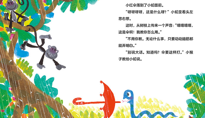 ○ 日本童书作家、剧作家筒井敬介的经典童话作品 ○ 亮点:情感认知、自我肯定、动物认知、美育启蒙 ☆ 一把可爱的小红伞的故事 ☆ 一场妙趣横生的历险 ☆ 一次发现自我的旅行 《谁丢了一把小红伞?》是一本关于自我发现、富有哲理的图画书。 “丢失”本来 是令人苦恼的事情,但作者用轻松愉快的叙述手法,配合画家明快稚拙的笔触,围绕丢失的小红伞,讲述了一个轻松愉快、富有哲理、充满温情的故事:不知道是谁遗落了一把小红伞。小红伞在猴子、小蛇、袋鼠、松鼠等动物的手中辗转,最终找到了适合它的归宿。 本书讲述的是一段有趣的“历险”。孩子跟随小红伞的“历险”,在欢笑之余感悟到生活的哲理。轻松的情节里自然而然地流露出爱与温情。