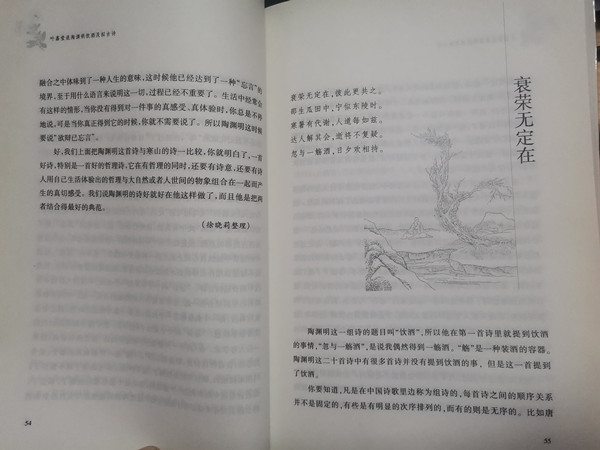 中的《饮酒》二十首和《拟古》九首是陶渊明非常重要的两组诗,其内涵极为丰富。《饮酒》二十首虽然以酒为题,而其意并不在于酒,其中更包含着陶渊明对仕隐出处、盛衰荣辱、历史现实等等人生重大问题的思索,真实地展现了陶渊明内心的矛盾和痛苦、挣扎和坚持。《拟古》九首的用意也不在摹拟古人,而是借拟古之题以自抒怀抱,申述在晋宋之交的衰乱之世中自己的理想与持守,同样体现了陶渊明对历史与人生的深切考量。叶嘉莹先生通过对这两组诗的精微讲解,知人论世,广征博引,着力剖析陶渊明遭逢世变的心路历程与人生选择,把陶渊明诗中幽微深隐之处一一阐明,成功地凸显了陶渊明高洁自守的品格和任真自得的境界。