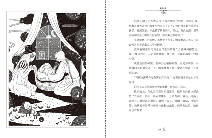 本书讲述了蜜蜂和乔治的故事。蜜蜂出生在白色王国,她刚出生没多久,母亲就去世了。母亲去世之前,将蜜蜂托付给克莱丽德王国的王后照顾。蜜蜂和克莱丽德王国的王子乔治一起成长。
