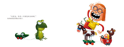 《就是喜欢绿》——克莱夫是个只喜欢绿颜色的小男孩,他拥有各种各样的绿色衣服、绿色鞋子和绿色帽子。在五颜六色的东西中,他只选择绿色。而克莱夫的姐姐却总是以此取笑他,说他像棵卷心菜,像根绿豆角,还像一堆青苔……可克莱夫不这么想,他觉得自己喜欢的就是最棒的。