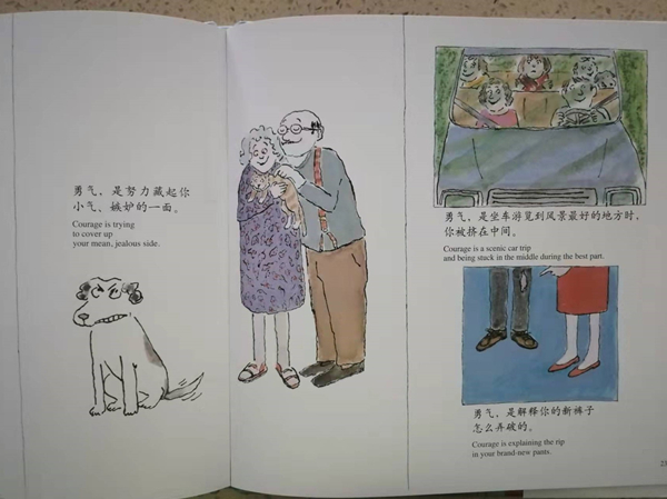 作者采撷生活中小小的片断,将抽象的勇气转化成容易理解的例子:勇气是骑自行车不装辅助轮,是留下一根棒棒糖明天享用,是勇尝不喜欢的蔬菜……肯定孩子的每一次进步,鼓励孩子树立自信心,勇敢面对生活的中的挑战。