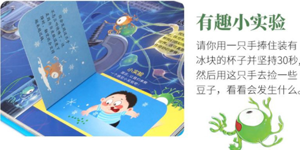 这是一套适合0-4岁宝宝看的翻翻游戏书,通过各种形式的翻阅向宝宝展现了一幅幅生动的画面。精美的绘图、巧妙的设计,牢牢地抓住宝宝的好奇心和注意力。 解答孩子各种疑问,满足孩子的求知欲:我们的小脑地啊里装着什么?食物去了哪里?细菌和病毒是如何传播的呢?血液是从哪里来的 ?