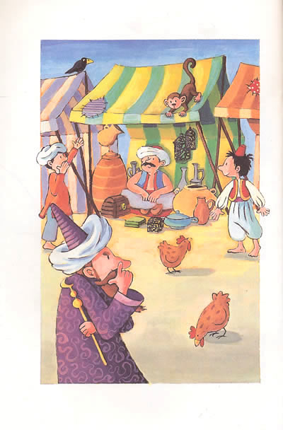 山鲁佐德幸运地活了下来,但她必须在每天晚上讲新的童话给他的丈夫——残暴的国王听。山鲁佐德讲了航海家辛巴达的故事,阿里巴巴和四十大盗的故事,也讲了阿拉丁和神灯的故事。她不停地讲啊讲,直到国王在一千零一夜之后决定不杀死她为止。