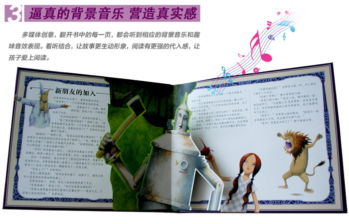 这个享誉的世界、陪伴几代人成长的经典童话,现在以一种更加有趣、互动的形式呈现给孩子们。打开书的一瞬间,就可以直观地感受肆虐的龙卷风、漂亮的翡翠城、神秘的奥兹大王......耳畔还有逼真的背景音效响起。故事文字量适中,更符合幼儿的阅读接受力和理解力。让孩子有种身临其境的感觉,在童话故事中,获得满满正能量。
