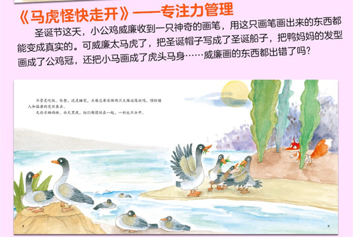 《收浆果的小刺猬》 秋天,浆果都成熟了,小刺猬汤姆在地上一滚,后背就扎满了浆果。后来,小动物们都储备过冬的浆果时,汤姆不是说没吃完上次收的,就是说他还在睡觉……等到了冬天,汤姆才发现树上已经没有浆果了。没有储备浆果的汤姆该怎么过冬呢?他想到办法了吗? 《小蜗牛看日出》 小蜗牛拉米偶然间听到小喜鹊们谈论日出,便立志也要爬到树顶看最美的日出。一天清晨,拉米收拾好行囊开始向树上爬,途中遇到的动物们都觉得拉米爬不到大树顶上。拉米迎着风吹雨淋,一天一天地向上爬。拉米爬到树顶了吗?他看到最美的日出了吗? 《钓月亮的小女巫》 小女巫露西正对着月亮施展她的新魔法,突然,月亮变成黄鱼掉进了大海里。露西念任何咒语都不能把月亮变回来,害怕被女巫婆婆惩罚的露西躲到了森林里。森林里的小动物们都在谈论月亮突然不见了事情。露西能把月亮变回来吗?她是怎么做到的? 《小蚂...