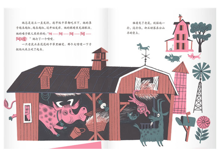 《奶牛打了个大喷嚏》 你知道一个小小的失误也可能酿成一场巨大的混乱吗?比如说……一个喷嚏。 这天早上,我的小弟弟杰克因为贪玩让家里的奶牛花花着了凉,着凉的花花打了个惊天大喷嚏!然后,一切都失控了:家里的山羊和老猫开上了蒸汽压路机,学校的围墙被撞出个大洞,市中心的动物园被碾平了,动物们坐上了摩天轮滚下了山坡,海上放起了缤纷的烟花,全城的消防员都出动了……